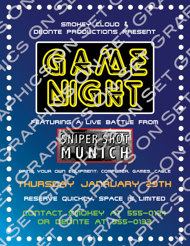 8.5 x 11 - game/gamer night. Full color.
