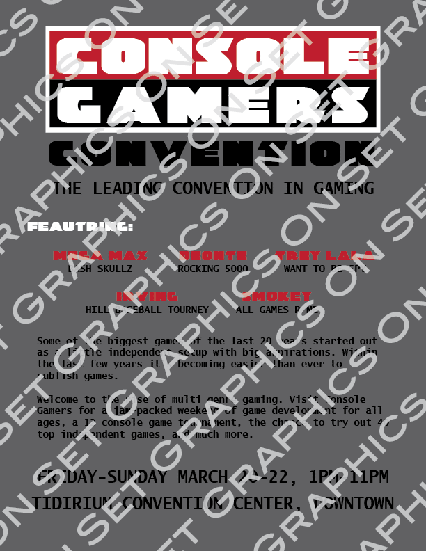 8.5 x 11 - gamer convention. Full color.