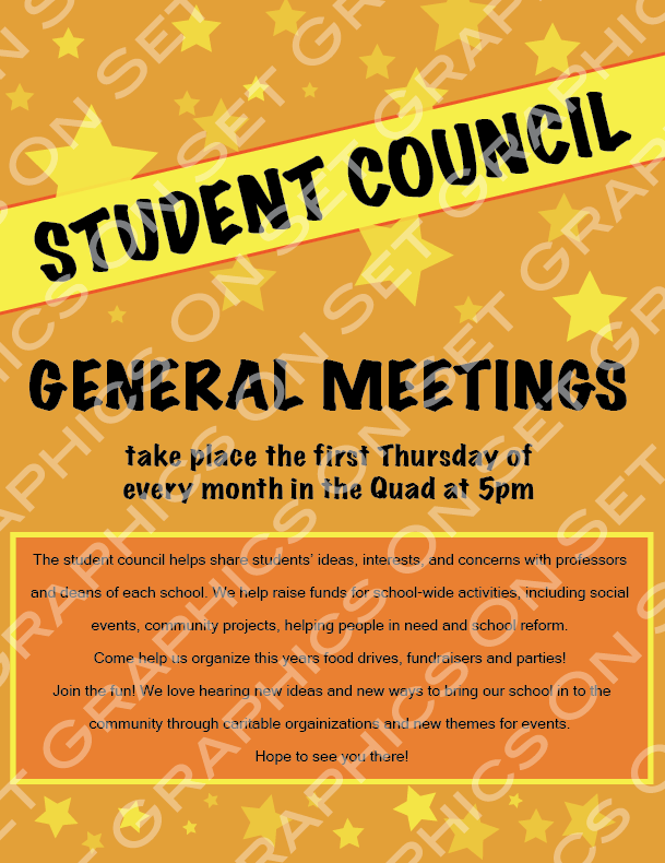 8.5 x 11 flyer for a student counil meeting. Full color.